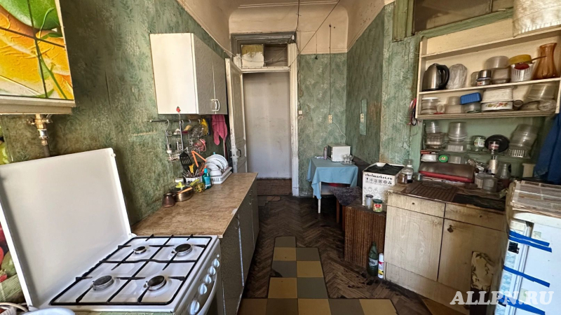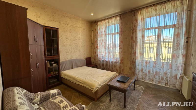 В продаже просторная комната 26.6 кв.м с балконом с видом на центр Петербурга. На 6-м этаже шестиэтажного дома, построенного в 1911 году (межэтажные перекрытия: металлические балки), в просторной 8-комнатной квартире общей площадью 227,2 метра.